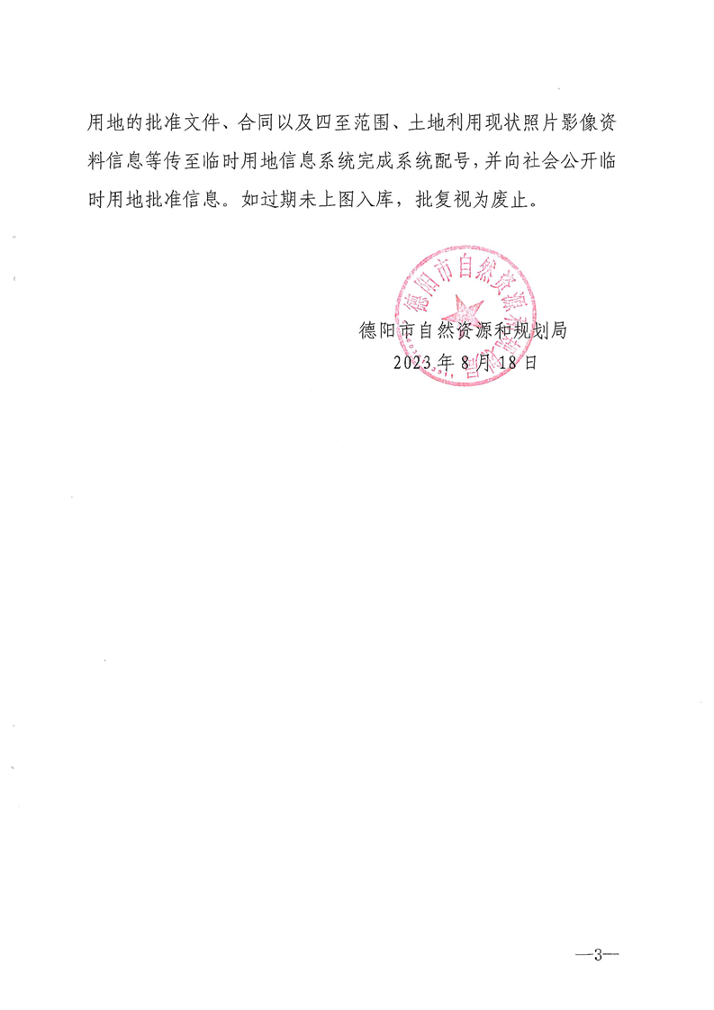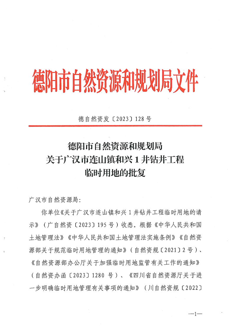 德阳市自然资源和规划局关于伟德BETVLCTOR客户端连山镇和兴1井钻井工程临时用地的批复