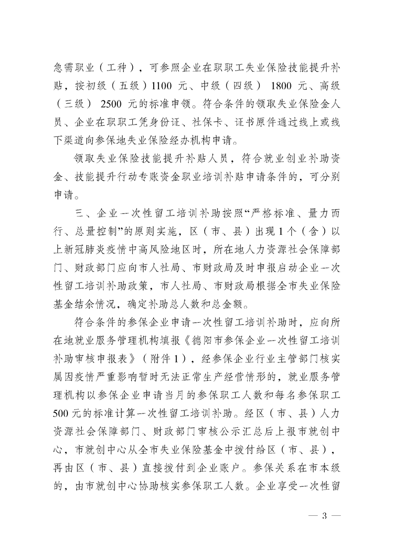 德阳市人社局、德阳市财政局、国家税务总局德阳市税务局转发《关于做好失业保险稳岗位提技能防失业工作的通知》的通知